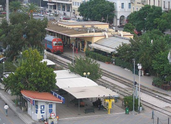 Patras railway station is a railway station in Patras in the northwestern Peloponnese, Greece. The station is located in the center of the city, beside the north port on Piraeus–Patras line and Patras–Kyparissia line and is severed by both Proastiakos Patras Services. Pending the completion of the Athens Airport–Patras railway, it is also the starting point of TrainOSE bus lines to Aigio, Diakopto and Kiato, where connecting train services to Athens Airport and Piraeus are available. Diakopto is also the terminus of the unique rack railway to Kalavryta.