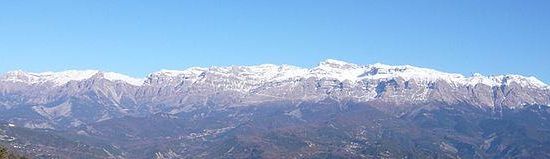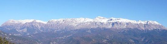 Athamanika or Tzoumerka is a mountain range in northwestern Greece, part of the wider Pindus mountain range. Its highest point is the mountain Kakarditsa, at 2,429 m. Its length is approximately 40 km from north to south and its width is approximately 15 to 20 km from east to west. The only major road crossing the Athamanika is the Greek National Road 30 .
