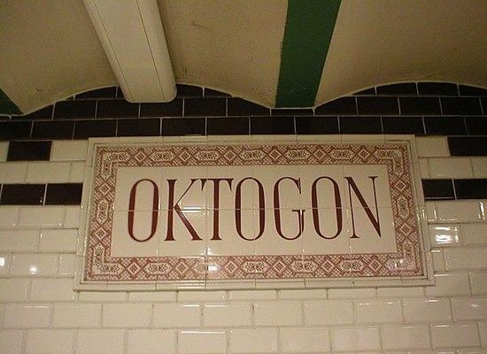 Oktogon is a station of the yellow M1 line of the Budapest Metro under Oktogon. The station is located at the junction of Budapest's Grand Boulevard and Andrássy Avenue . It was opened on 2 May 1896 as part of the inaugural section of the Budapest Metro, between Vörösmarty tér and Széchenyi fürdő. This section, known as the Millennium Underground Railway, was the first metro system in continental Europe. In 2002, it was included into the World Heritage Site "Budapest, including the Banks of the Danube, the Buda Castle Quarter and Andrássy Avenue".