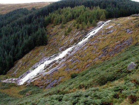 Glenmacnass Waterfall is an 80-metre high waterfall situated at the head of the Glenmacnass Valley in the Wicklow Mountains in Ireland. The Glenmacnass Waterfall is a popular tourist destination and scenic viewpoint area in the Wicklow Mountains. The Waterfall is bounded to the west by Tonelagee, and to the east by Scarr mountain. The entire Glenmacnass Valley can be accessed by the R115 road , which connects the Sally Gap in the north, to the village of Laragh in the south.