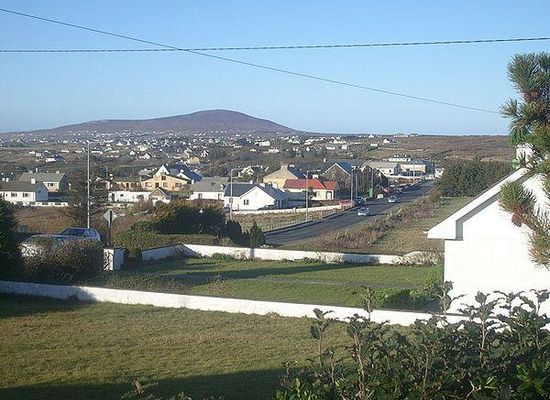 Doirí Beaga , is a Gaeltacht village and townland in the parish of Gweedore in County Donegal, Ireland. It includes a Roman Catholic church, RTÉ Raidió na Gaeltachta regional studios, a Gaelic Athletic Association club and a golf club. According to the 2016 census 53.4% of the population spoke Irish on a daily basis outside the education system.