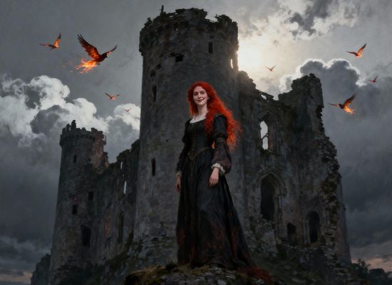 The "ghost lady" of Leamaneh Castle, Máire Rua O'Brien (also known as " Red Mary " because of her fiery red hair), is one of the most infamous and mysterious figures in Irish folklore and history. Máire Rua was born around 1615 to a noble family in County Clare. She married three times, including to Conor O'Brien of Leamaneh Castle . Through her marriages and strategic choices, she managed to preserve her estates during a period of great unrest in Ireland. She was known for her domineering personality and ruthless behavior, both toward enemies and her servants. Stories tell of her hanging servants who displeased her and of her harsh treatment of unwanted visitors. Legend has it that many husbands disappeared under mysterious circumstances—sometimes murder or other sinister practices are involved, though these elements are largely attributable to oral traditions and horror stories.