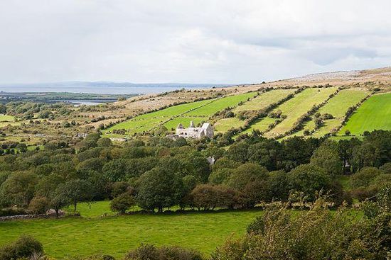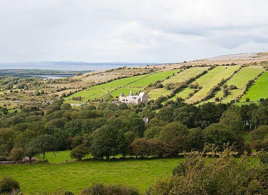 Corcomroe Abbey is an early 13th-century Cistercian monastery located in the north of the Burren region of County Clare, Ireland, a few miles east of the village of Ballyvaughan in the Barony of Burren. It was once known as "St. Mary of the Fertile Rock", a reference to the Burren's fertile soil.