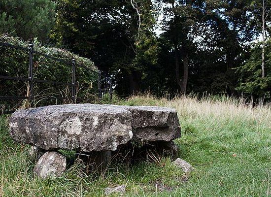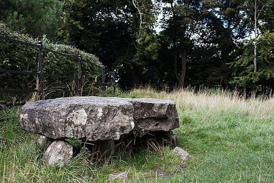 The tomb, situated on a small ridge, is a cist, a type of burial chamber found in Ireland on the south and east coast. It dates from about 3000 B.C. to 2500 B.C. A capstone, measuring 1.96 metres by 1.05 metres , is supported by smaller stones. The capstone is water-worn, and is thought to have come from the River Liffey nearby.