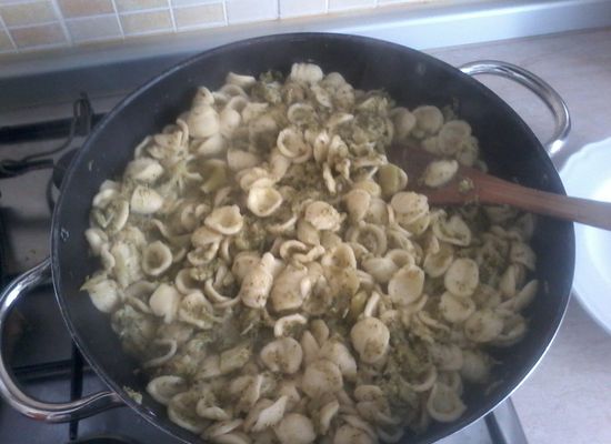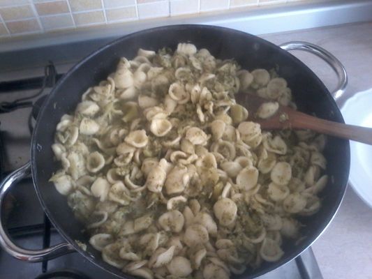 Orecchiette alle cime di rapa is a famous dish of Bari. Bari is the capital city of the Metropolitan City of Bari and is located in the region of Apulia. It is considered to be the second most important economic centre of mainland Southern Italy after Naples. Orecchiette, which mean "little ears" in Italian, is the most typical pasta dish that you can get in Bari and Apulia. The origin of this pasta shape comes from France.