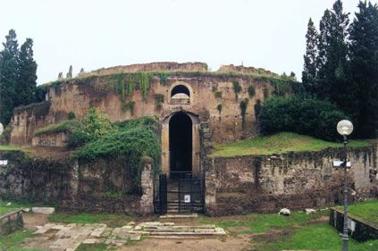 The Mausoleum of Augustus was a large tomb built by the Roman Emperor Augustus in 28 BC on the Campus Martius in Rome. The Mausoleum, now located on the Piazza Augusto Imperatore, is no longer open to tourists, and the ravages of time and carelessness have stripped the ruins bare. However, the ruins remain an impressive and dominating landmark on the northern side of the Campus Martius.