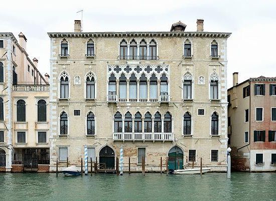 The Palazzo Bernardo a San Polo, also known as the Giustinian Bernardo is a Gothic-style palace located between Palazzo Querini Dubois and across the Rio del la Madoneta, Casa Sicher, on the Grand Canal in the sestiere of San Polo of Venice, Italy. It was built in the 14th century for the Bernardo family, a patrician family from Treviso, but putatively originally from Rome. A separate Palazzo Bernardo, near the Ponte Bernardo but also in San Polo, was acquired in the 16th century by the Celsi family. At this palace were housed Francesco Sforza and his wife, Bianca Visconti, during a grand state visit to Venice in May 1442. In 1532, the palace lodged Lorenzo Strozzi, who then hosted a Medici Cardinal in a feast. The palace was in the hands of the Bernardo till 1868.