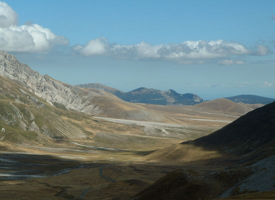 Campo Imperatore has been popular with filmmakers. The location has been used in more than twenty films, among them The American, The Name of the Rose, Krull, Ladyhawke, Il sole anche di notte, and L'Armata ritorna. Campo Imperatore is a mountain grassland or alpine meadow formed by a high basin shaped plateau. It is the largest plateau of the Apennine ridge. Known as Italy's "Little Tibet", it is located in the Gran Sasso e Monti della Laga National Park. Campo Imperatore has a tectonic origin shaped by alluviums and glaciers. The plateau, which is 27 km in length and an average of 8 km in width, lies adjacent to the Apennines' highest peak Corno Grande, and Europe's southernmost glacier, the Calderone. The plateau's altitude ranges from 1,500 to 1,900 meters. It covers an expanse of approximately 80 km². Campo Imperatore is home to one of Italy's oldest alpine ski resorts.