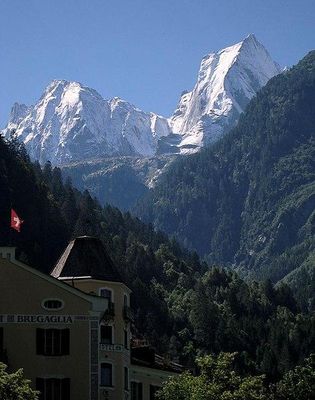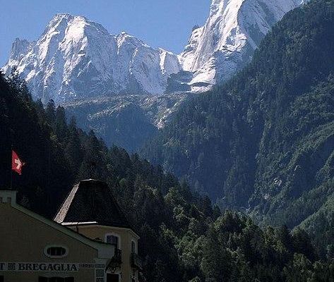 Piz Badile is a mountain of the Bregaglia range in the Swiss canton of Graubünden and the Italian region of Lombardy. The border between the two countries runs along the summit ridge. Its north-east face, overlooking the Swiss Val Bregaglia near Soglio, is considered one of the six great north faces of the Alps.