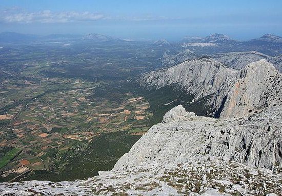 The Supramonte is a mountain range located in central-eastern Sardinia, Italy. It lies northeast of the Gennargentu massif, traveling eastwards until it reaches the Tyrrhenian Sea at the Gulf of Orosei. It has an area of about 35,000 hectares, encompassing most of the territories of the comuni of Baunei, Dorgali, Oliena, Orgosolo and Urzulei. The populated areas of these comuni lie at the borders of the Supramonte, which, for the most part, is a largely uninhabited area of sharp limestone cliffs and deep, lush canyons.