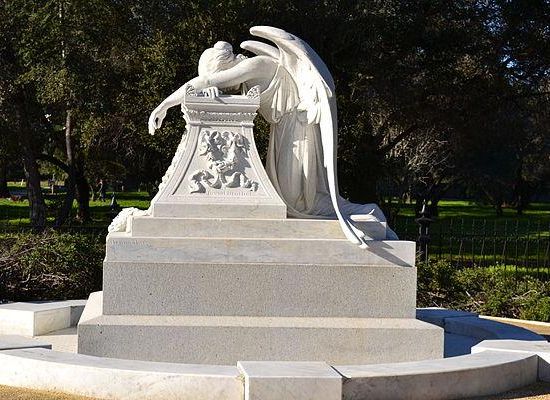 This was Story's last major work prior to his death, dying a year after his wife. The statue's creation was documented in an 1896 issue of Cosmopolitan Magazine: according to this account, his wife's death so devastated Story that he lost interest in sculpture, but was inspired to create the monument by his children, who recommended it as a means of memorializing the woman. Unlike the typical angelic grave art, "this dramatic life-size winged figure speaks more of the pain of those left behind" by appearing "collapsed, weeping and draped over the tomb".