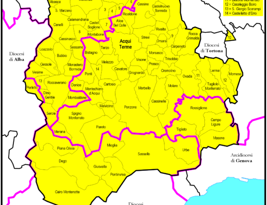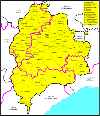 The Roman Catholic Diocese of Acqui straddles the regions of Piedmont and Liguria, in northwest Italy. The ancient Roman name of the place was Aquae Statiellae, which was sometimes confused with Aquae Sentiae , and Aquae Augustae , where there were also bishops. Acqui had always been subordinate to the Province of Milan, down until 1817, when Pope Pius VII assigned it to the Province of Turin. As a suffragan of the Archdiocese of Turin, it falls within the ecclesiastical region of Piedmont.