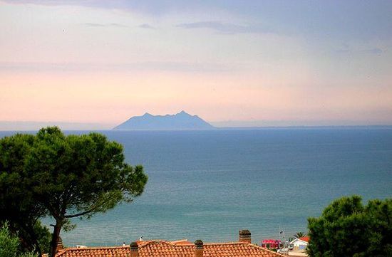 Monte Circeo or Cape Circeo is a mountain remaining as a promontory that marks the southwestern limit of the former Pontine Marshes. Although a headland, it was not formed by coastal erosion – as headlands are usually formed – but is a remnant of the orogenic processes that created the Apennines. The entire coast of Lazio, on which the mountain and the marsh are located, was a chain of barrier islands that was formed on a horst and made part of the mainland by sedimentation of the intervening graben.
