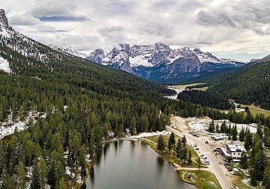 Sorapiss, also referred to as Sorapis or Punta Sorapiss, is a mountain in the Dolomites within the Veneto region of northern Italy. Situated in the comune of Cortina d'Ampezzo, it has an elevation of 3,205 metres . In its vicinity is a mountain pass of the same name, as well as Sorapiss Lake , at the foot of the mountain. The mountain range is part of the "Natural Park of the Ampezzo Dolomites".