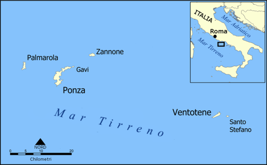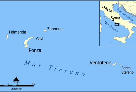Santo Stefano is an island in the Tyrrhenian Sea off the west coast of Italy, and part of the Pontine Islands. It is roughly circular, with a diametre less than 400 m, and it is located 2 km east of the nearby island of Ventotene.