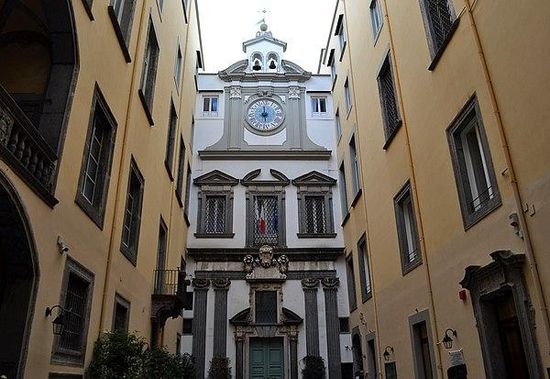 The Palazzo Ricca is a monumental palace, located on the southernmost end of Via dei Tribunali #231, in central Naples, region of Campania, Italy. It presently houses the archives of the Foundation of the Istituto Banco di Napoli. The palace is just down the street from the entrance to Castel Capuano
