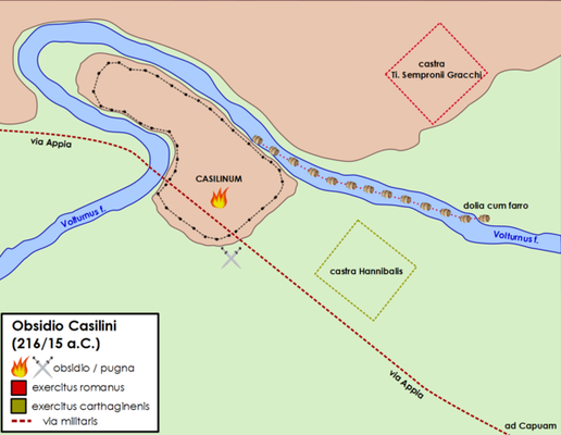 Casilinum was an ancient city of Campania, Italy, situated some 3 miles north-west of the ancient Capua. The position of Casilinum at the junction of the Via Appia and Via Latina, at their crossing of the river Volturnus by a still-existing three-arched bridge, gave the town considerable strategic importance during the Roman Republic.
