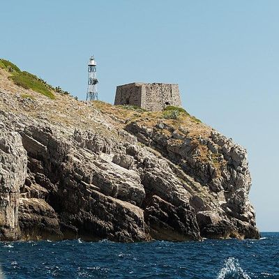 Punta Campanella Lighthouse is an active lighthouse located at the end of the south western extremity of the Sorrentine Peninsula, Campania on the Tyrrhenian Sea.