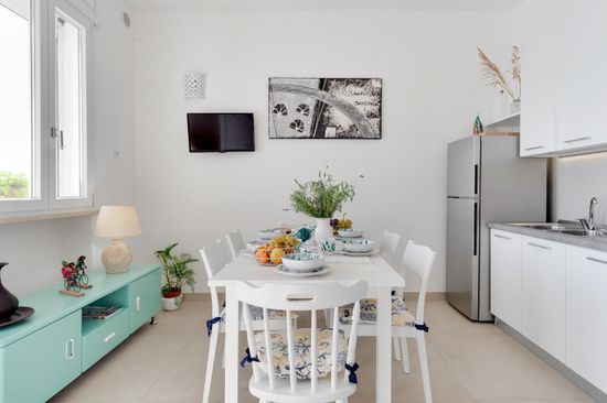 YOUR VACATION OBJECT: Apartment of 60 m2 in Lido Marini with 3 bedrooms and 2 baths for 7 persons . ROOM COMPOSITION: * Bedroom: 1 Double * Bedroom: 2 Single, 1 Bathroom full * Bedroom: 1 Single * Other: 2 Single * Bathroom: 1 Full AMENITIES: Appartamento Virgilio is on the on the first floor and provides: Air Conditioner Living Room,Safe,Kitchen,Outdoor Shower,Oven,Freezer,Refridgerator,Garden Furniture,Tv,Balcony,Sea View,Quiet Area,Hair Dryer OUTSIDE AND SURROUNDINGS: Small outdoor space (10 m2), partially fenced Parking street parking - free (quiet area) Distance from the beach 100 meters The nearest restaurants, shops and servicesin the same block Public transit, walking distance SIDE COSTS: The price refers to the cost of the rental and includes utilities. Additional services can be added during the rental period as they are available: - Pets: Not Permitted - Cleanings (fee): included in the price - Parking (fee): included in the price - Air conditioning (fee): included in the price - Security deposit: 0 EUR Instructions for the check-in: Check-in begins at h.