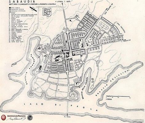 An hour and a half to the south of Rome, Sabaudia is a coastal town. It is one of several towns built on the reclaimed marshland of the Pontine Marshes Agro Pontino. This marsh was drained under orders from Benito Mussolini. Vast tracts of malaria-infested swamp were drained by workers transported from poor areas of northern Italy, leaving the coastal area south of Rome with rich farmland. These towns were built so that the fascist regime could demonstrate the draining of the marshland, as well as to provide housing communities for the increasing urban populations of Italy's large cities.