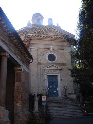 Santa Maria Scala Coeli is a Roman Catholic Church located on the grounds of the Tre Fontane Abbey located on Via di Acque Salvie 1 in the Quartiere Ardeatino in Rome. This is one of three churches affiliated with the Trappist monastery, and is located on a small lane, Via delle Tre Fontane, inside the abbey complex. The location of this church is held by tradition to be where St Paul the Apostle was imprisoned. on Via delle Tre Fontane in Rome.