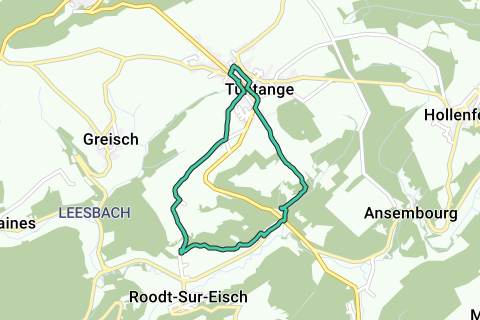 The route Circuits auto-pédestres de Tuntange in Luxembourg is 7 kilometers long and leads through the picturesque village of Tuntange in the municipality of Helperknapp. The former municipality is home to a variety of historical landmarks that are harmoniously embedded in the natural landscape. Discover the beauty and history of this region along this path.