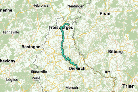 The Sentier du Nord is a 69 km long hiking trail in Luxembourg. On this path, hikers can discover the impressive neo-Romanesque abbey of Clervaux, which was built in 1910 by the Benedictines. The red tiled roofs and the green landscape contrast make the abbey a popular photography subject. The history of the region comes alive through a nearby monument from 1798.