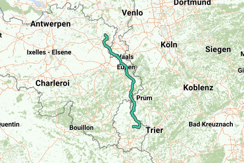 Leuke rit vanaf Larochette naar Limburg (Gruitrode) via Mullerthal , Vianden , flirtend met de Duitse grens naar Sankt Vith , Butgenbach en een stukje mergelroute door Maastricht terug Belgie binnen .