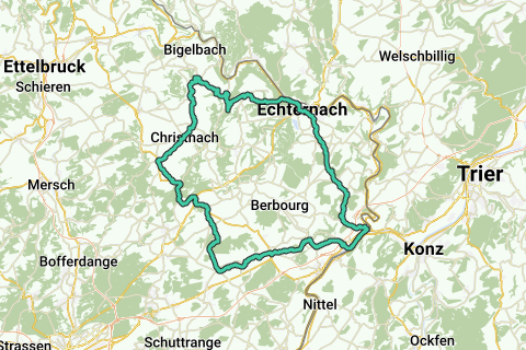 This route along Echternach starts (next address): 1 Rue de la Gare, 6832 Betzdorf. Elevation: 1138 m. Don't forget drinks and food for the journey.