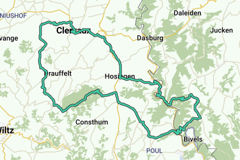This route along the Klöppelkrieg Memorial has the starting point (next address): Rue de Putscheid, 9408 Putscheid. Route statistics: The total ascent is 1123 meters. The maximum gradient is 12.51% and the average gradient is 2.4%. A great challenge for anyone not afraid of a little lactic acid.