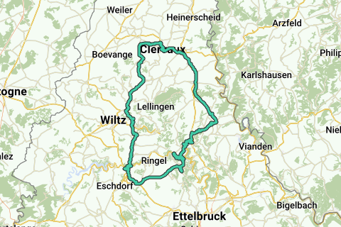 This route starts and ends at: Montée de l'Église, 9712 Clervaux. Overall difficulty level of this route: 93/100. Place this route on your GPS and go.