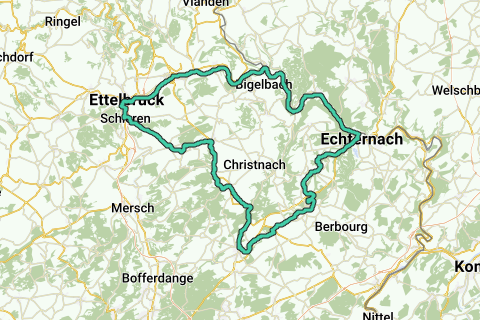 You start in Ettelbruck and follow the Luxembourg bike path PC16 (Voie Chantable de la Moyenne Sûre) along the banks of the Sauer River through Diekirch to Wallendorf.
