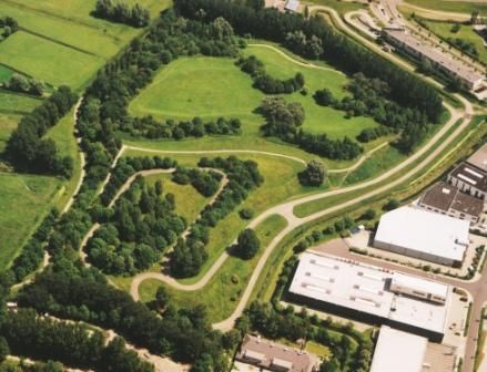 This park is build on top of a former waste dump site, enabling new use of the terrain. As result a strange "hilly" park has emerged. It's used for all kinds of recreation, including also official (mountain) bike contests.
