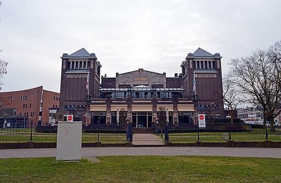 Concertgebouw de Vereeniging is a concert hall located in Nijmegen, Netherlands. The facility officially opened in 1915 and is built in a mixture of Art Nouveau and Art Deco styles. It has a capacity of 1,450 seats , and is renowned for its outstanding acoustics for orchestral music.In 1882, the private society De Vereeniging was established with a concert hall at the Keizer Karelplein. Around 1900 the old Nijmegen concert hall turned out to have had its best time, plans were made for a new one. That these plans were not a superfluous luxury, was evident from the attitude of conductor Willem Mengelberg. He refused to visit Nijmegen any longer as long as nothing was done to the accommodation. After the construction of a new concert hall was started in 1914, the official opening took place in February 1915. The architect of the whole was Oscar Leeuw from Roermond. It took another two years before the small hall was opened. The Vereeniging turned out to have become a 'Gesamtkunstwerk', because both the architect Oscar Leeuw and his brother Henri Leeuw jr. had contributed. The figurative work was developed in Nijmegen by the painter Huib Luns and the Antwerp sculptor Egidius Everaerts, while the non-figurative work was made by the sculptor Jacques Oor.