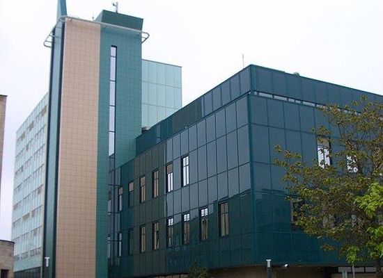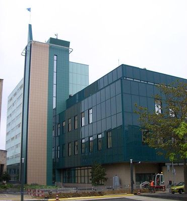 The building was relatively different for Heerlen, although used to modern architecture , this building was described as skyscraper like . It has two entrances one on the Raadshuisplein and the other one the Geleenstraat, since the Geleenstraat is located lower the entrance there is 10 m under the Raadshuisplein level .