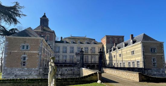 The medieval Borgharen Castle is located by the Maas River. The castle farm is a national monument. It is a moated complex with a 17th-century semi-circular main building in Baroque style, flanked by two square towers.