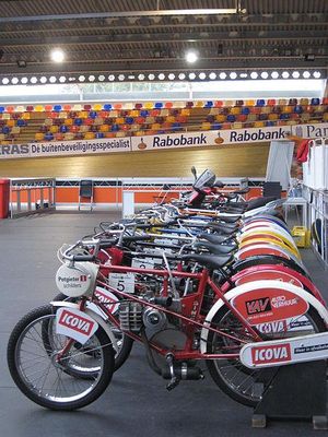 The Sportpaleis Alkmaar is a velodrome and multisport indoor arena in Alkmaar, the Netherlands. The original velodrome, which was built in 1964 and made of concrete, was renovated in 2003. The concrete track was replaced by a wooden track and was now situated in a completely covered hall. The cycling track is 250 m in length and 6.5 m in width. The maximum slope is 42°. The track encloses a multifunctional indoor sportsfield. The hall has a capacity for 4750 spectators.