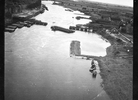 The ship bridge Arnhem was a pontoon bridge in Arnhem over the Lower Rhine. The ship bridge was located to the west of the city at the site where the Nelson Mandela Bridge is now. It provided the most important connection across the Rhine until the construction of the Rhine bridge in 1935. In 1603, the first ship bridge was built. This made the city more accessible for farmers from the Betuwe and for merchants from Nijmegen who previously crossed with a ferry. The ship bridge consisted of a number of small ships with a bridge deck on which people could walk or drive from one bank to the other. When a ship wanted to pass on the river, a part of the bridge would be removed. Those wanting to cross had to wait; this could sometimes take a long time. If there was a lot of ice floating on the river, the whole bridge was removed and placed in the harbor.
