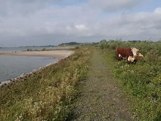 In this new nature, people can stroll and enjoy to their heart's content. During your walk you will probably encounter cows. They don't just walk there. They keep the plants and grass short. It is important that the area is not overgrown at high tide. So those cows are actually natural mowers. The grazing area is freely accessible to hikers. The signs at the entrances indicate the 'house rules' that apply in the area. One of these rules is that dogs are only welcome on a leash. This is to prevent disruption and unsafe situations with the cattle and game present.