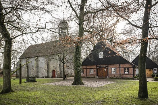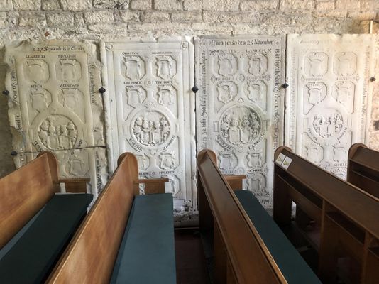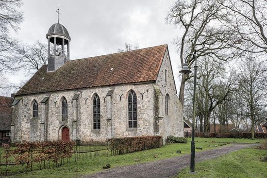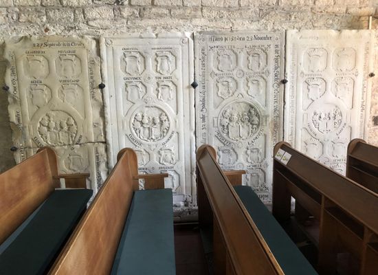 When Hugo van Buren established his commune around 1140, Weerselo already had a chapel. It must have been made of wood. Since 1178, this chapel, now a monastery church, was officially dedicated to Saint Remigius, the bishop who baptized Clovis and who is therefore also called, the apostle of the Franks. It could well be that in this period the church was already made of stone. Chunks of iron ore have been incorporated into the walls of the current church. The church now has four bays. Each part of a church, which is spanned by a separate vault, is called a bay. Schouwman's watercolour from the 18th century (see below) tells us that the church originally had five bays. However, the westernmost bay, 6.20 m long, was demolished around 1800, but its foundations are still present.