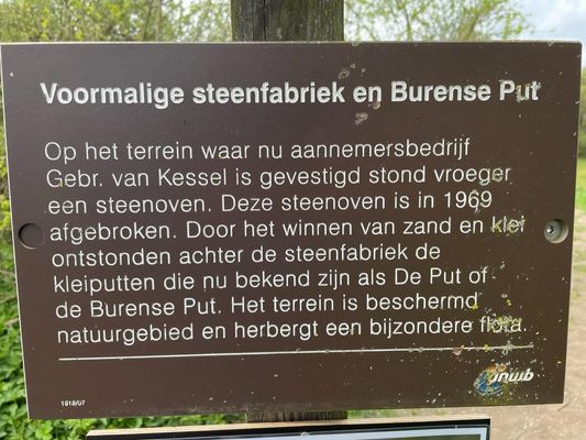The Tichelgaten were created by clay and sand extraction. The map of Buren in 1890 shows the first buildings of the N.V. Waalsteenfabriek, along the Korne, Kornedijk and Hennisdijk, where construction company Van Kessel is now located. The clay was extracted on a ridge along the Hennisdijk. The site has been excavated by hand up to 1 meter. As a result, calcareous sand appeared. In the excavated areas, wet grasslands, thickets, alder forest and bushes were created. The lakes were created between 1922 and 1964 by sucking up sand. The large lake, from which the area owes its name "the Put of Buren", was dug between 1951 and 1954. At the end of the 1960s, the municipality of Buren had plans to build a new housing estate on the Tichelterrein, but these were blocked by people who saw the natural value. After 1970, the Forestry Commission bought a large part of the site. Later, a few plots and ponds will be added. Since that time, the Tichelgaten have been protected and managed.