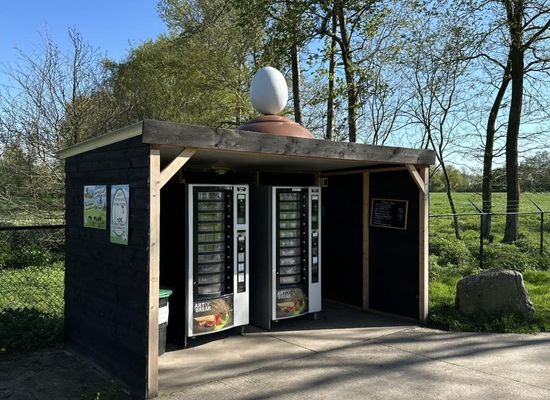 Egg vending machine Oosterwolde stands in front of a chicken farm, where the hens walk outside every day. Free-range eggs are laid fresh here every day. You can find these eggs together with other fresh farm products in the regional shop along the road.