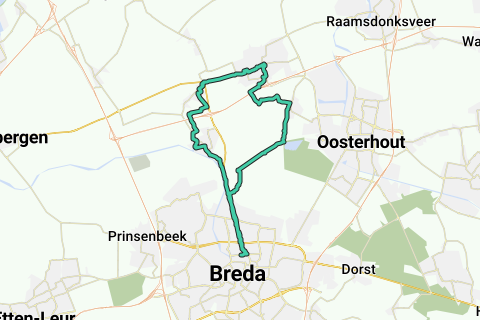 The route starts and ends at the NS station in Breda and winds through an open, rural landscape.