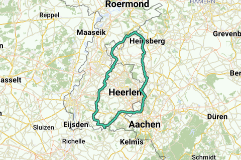Teuven – Hoogcruts – Terlinden – Banholt – Bruisterbosch – Margraten – Sibbe – Valkenburg – Arensgenhout – Aalbeek – Hunnecum – Grijzegrubben – Nagelbeek – Heisterbrug – Wolfhagen – Klein-Doenrade – Doenrade – Hillensberg – Süsterseel – Tüdderen – Millen-Bruch – Havert – Aan de Reijans – Echterbosch – Brüggelchen – Haaren – Haas – Heinsberg – Aphoven – Schellendahl – Waldenrath – Gillrath – Bocket – Teveren – Zweibrüggen – Marienberg – Rimburg – Broekhuizen – Bronkveld – Eygelshoven – Haanrade – Herzogenrath – Maubach – Forensberg – Mühlenbach – Horbach – Vetschau – Bocholtz – Baanheide – Wahlwiller – Mechelen – Schweiberg – Eperheide – Slenaken – Teuven