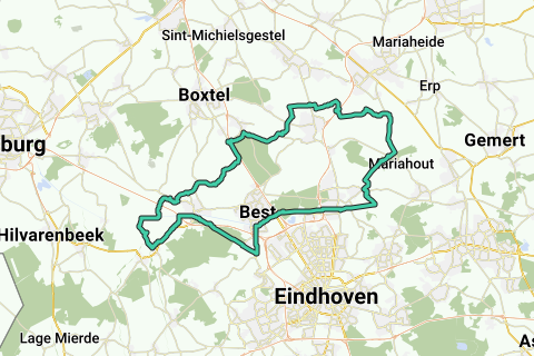Search for a parking space with the car near 16 Wilhelminakanaalstraat, 5684ZB Best. Overall difficulty level of this route: 47/100. The route passes by the following interesting points, among others: NH Best Hotel, Hotel de Moriaan (Hotel), Oirschot (Municipality), De Mortelen (Nature Reserve).