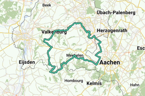 S.M.V. – Krindaal - De plank - Nurop – Slenaken – Heijenraedt – Schweiberg - Mechelen – Rott – Harles – Holset – Vaalsbroek – Vaals – just before the German border left – right – large road left Seffent – left Vetschau – Horbach – border over the Beitel, Heerlerbaan – left – Benzenrade – Welten – Terworm - Voerendaal – Craubeek – Termaar straight ahead Walem – Valkenberg – Vilt – Klein Welsden – Margraten – Bruisterbosch – Banholt – Bergenhuizen - Noorbeek - Vroelen - Ulvend - S.M.V.