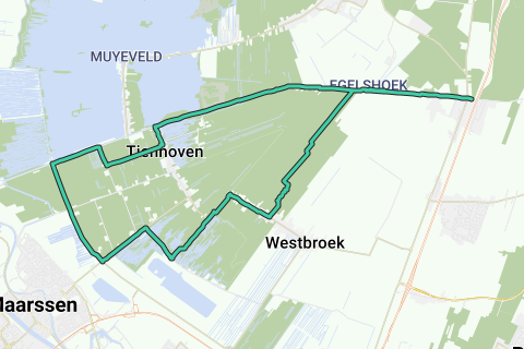 From Station Hollandsche Rading via Egelshoek to Bert Bos Path (5 km), then a stretch on a paved road to reach Veenkade. Take a break at the mosaic-tiled bench (part of the Bethune Path). Turn right at Veenkade and follow the path that bends to the right. Cross over the fence there and go to the continuation of Veenkade (the dike). Along the bushes of Robinson (wetland) to Tienhoven over the meadow. Break at Olde Regthuis. Return via the path between Stille Plas and Zodden back to Hollandsche Rading and to Perron Peet.