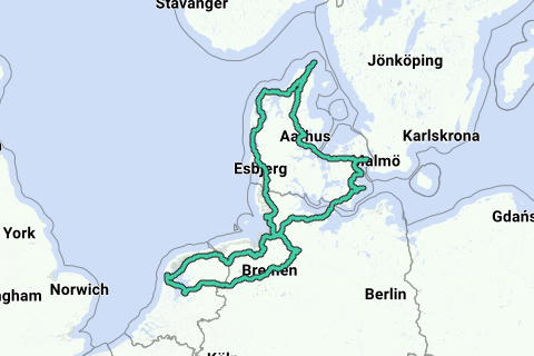 A nice trip from the Northwest of The Netherlands via Germany all around the coast of Denmark or vice versa with a lot of nice places to see along the way.
