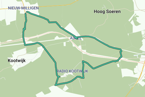 From Landal Rabbit Hill to Radio Kootwijk and to the sheep cold of Hoog Buurlo. On the way back along Hoog Soeren and the Asseler Heide.