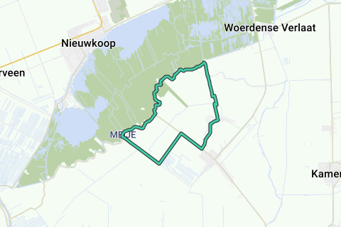 From the village of Meije along the Meije River, the starting point is from the parking lot by the village school behind the café De Halve Maan next to the church. We then go over the Hazekade via the Dwarsweg to the Middenweg through the polder landscape to enjoy the many birds that stay here. Halfway along the Randweg with its beautiful farms, the route goes over the Kievitspad through the marshy grassland. The frog choir certainly welcomes you, and you can enjoy the vast and magnificent landscape here. The end of the path is the Oude Meije in the nature reserve 'de Waaier,' which takes you to the "Werkschuur de Kievit" of Natuurmonumenten. Now you continue along the road, the Meije, until you reach "de Halve Maan" next to the village church where the parking lot by the school is located, which is the starting point.